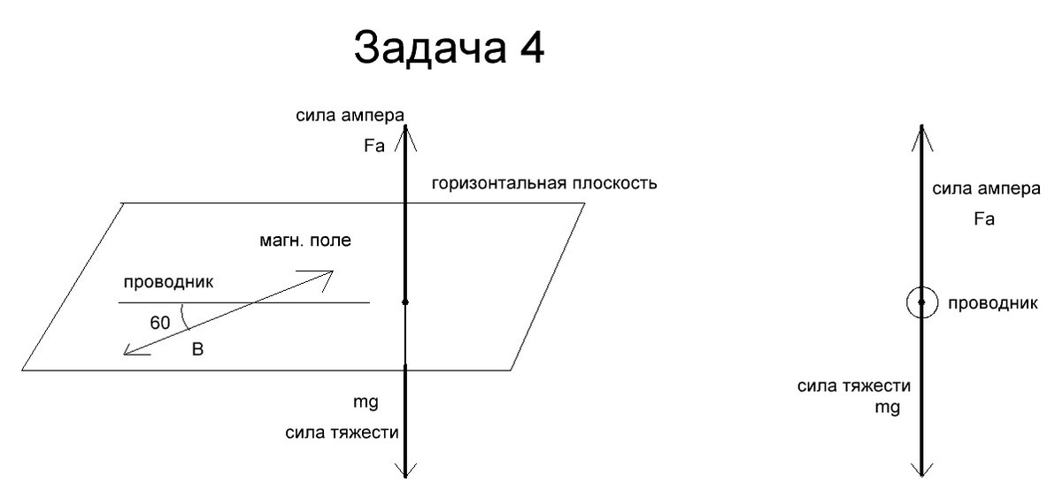 сила ампера Fa=I*L*B*sin(alpha) - действует вверх