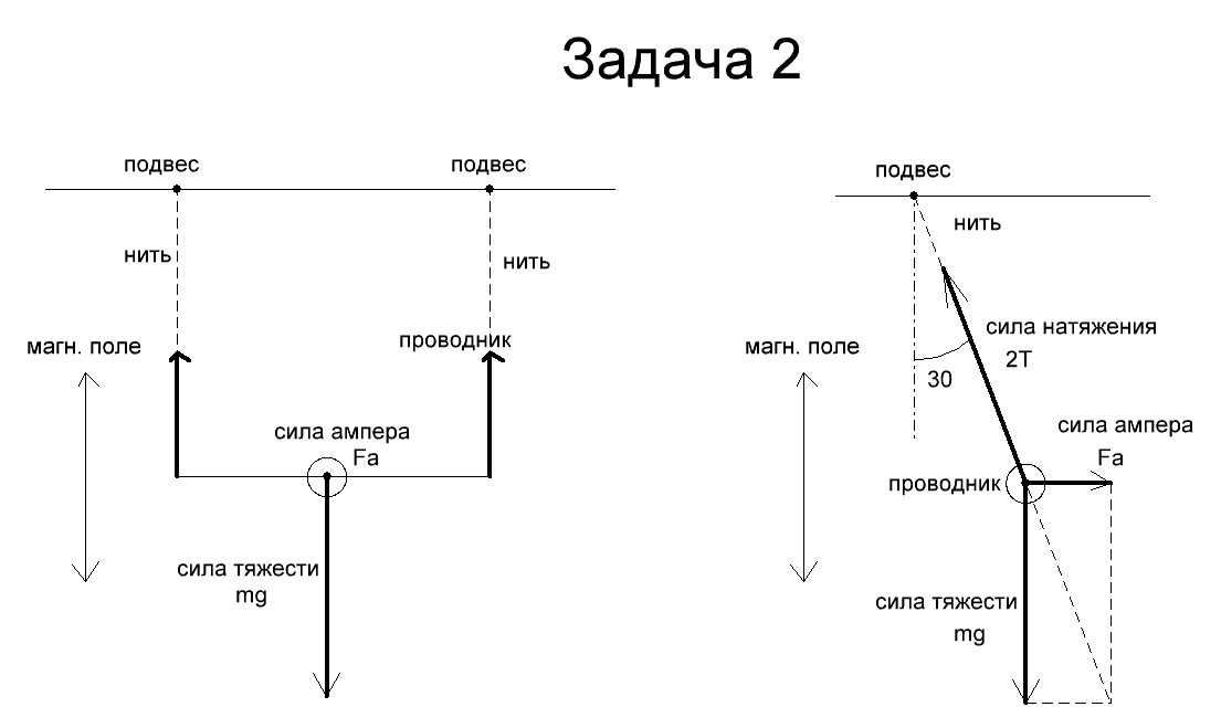 сила ампера Fa=I*L*B - отклоняет нить в горизонтальной плоскости