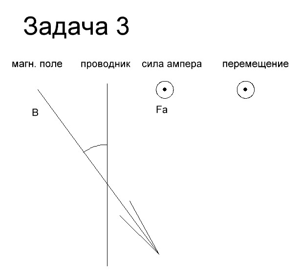 сила ампера Fa=I*L*B*sin(alpha) и перемещение параллельны