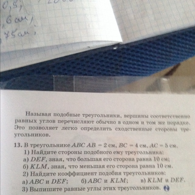 У треугольников DEF и KLM коэффициент подобия k=10:4=2,5