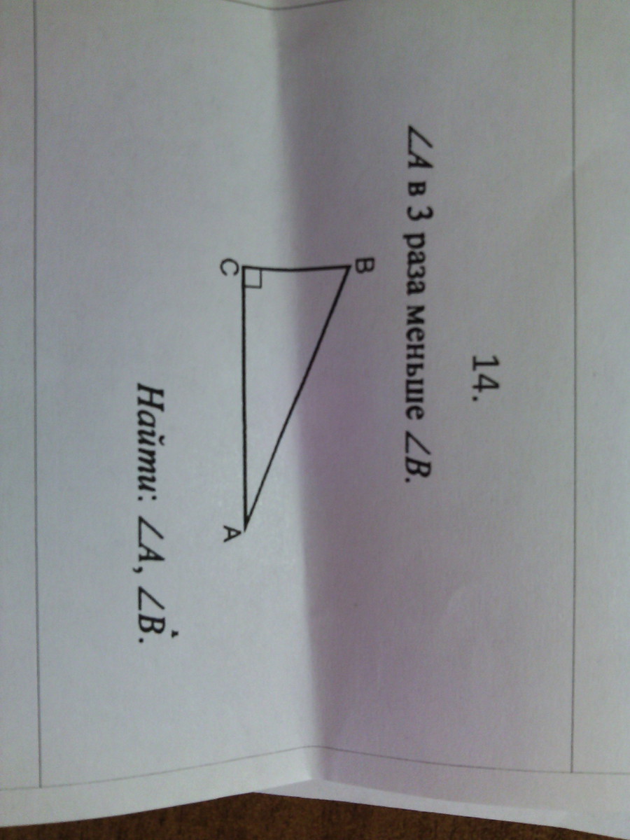 1. Примем за х угол А, тогда угол В=3х. Сумма двух острых углов прямоугольного треугольника = 90 град х+3х=90 4х=90, х=22,5