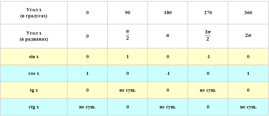 Я в математике ноль. 10 класс. Задали выучить таблицу синусов, косинусов, тангенсов, катангенсов, в инете куча разных таблиц. Скиньте правильную пожалуйста