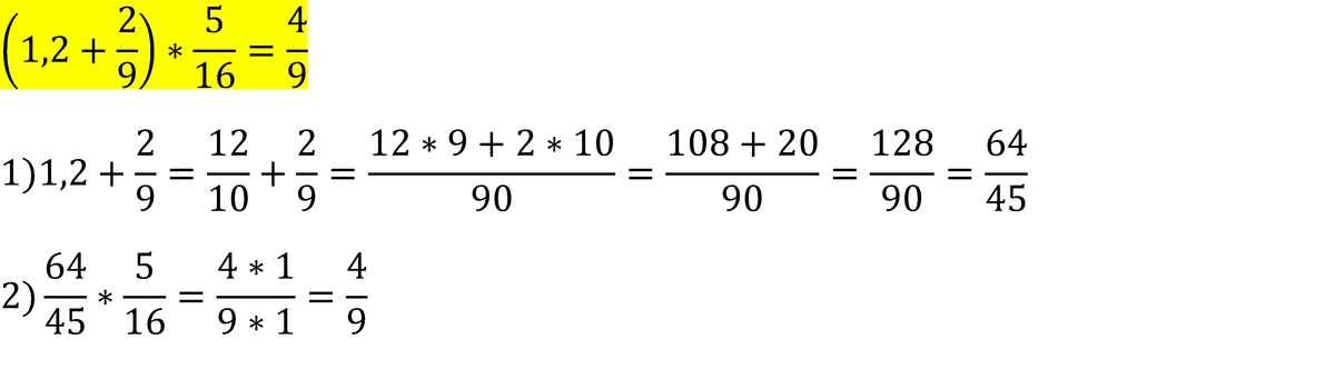 1)решаем то что в скобках 1,2+0.2(перевели дробь)=1.4