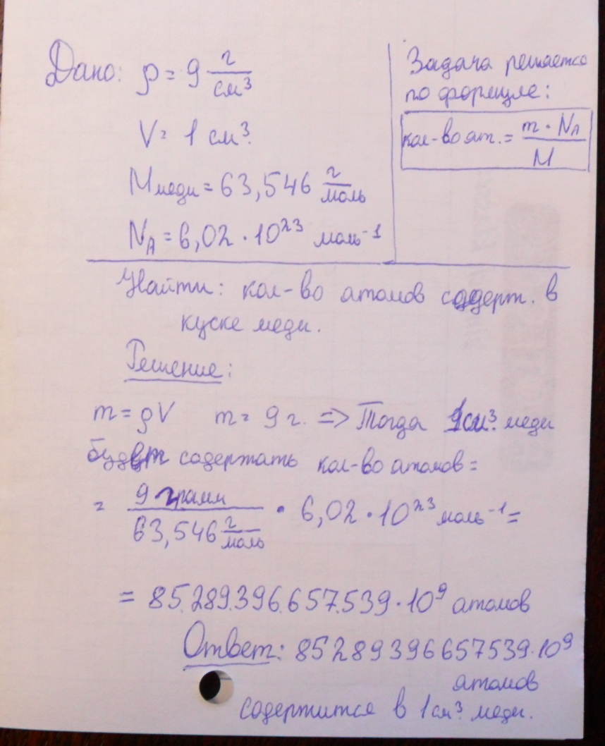 сколько атомов содержится в куске меди если V=1см^3 и плотность равна 9 грамм кубический сантиметр