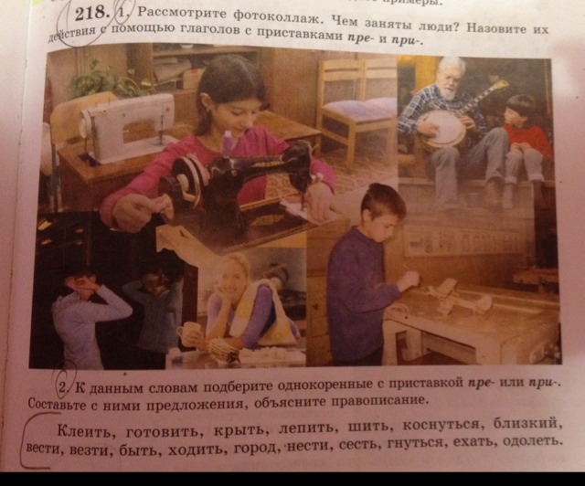 Помогите! 1. Рассмотрите фотоколлаж. Чем заняты люди? назовите их действия с помощью глаголов с приставками -пре и -при