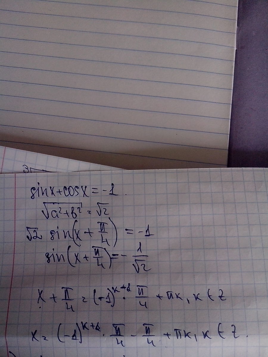решение аналогично предыдущему (sin(x)+cos(x)=-1)