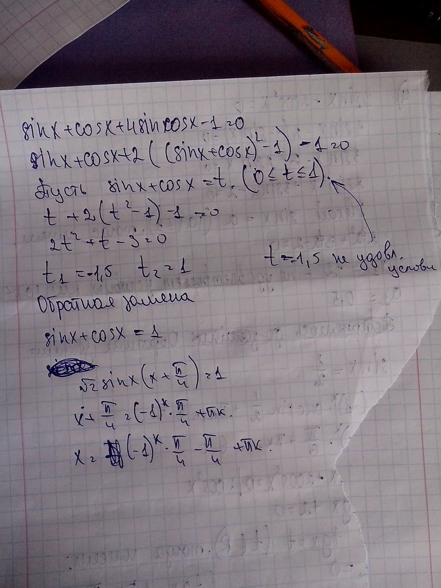sin(x)+cos(x)+4*sin(x)*cos(x) - 1 = 0 - условие такое ?