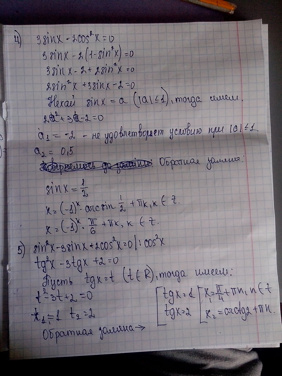 х=pi/4+pi*k или x=arctg(2) + pi*k