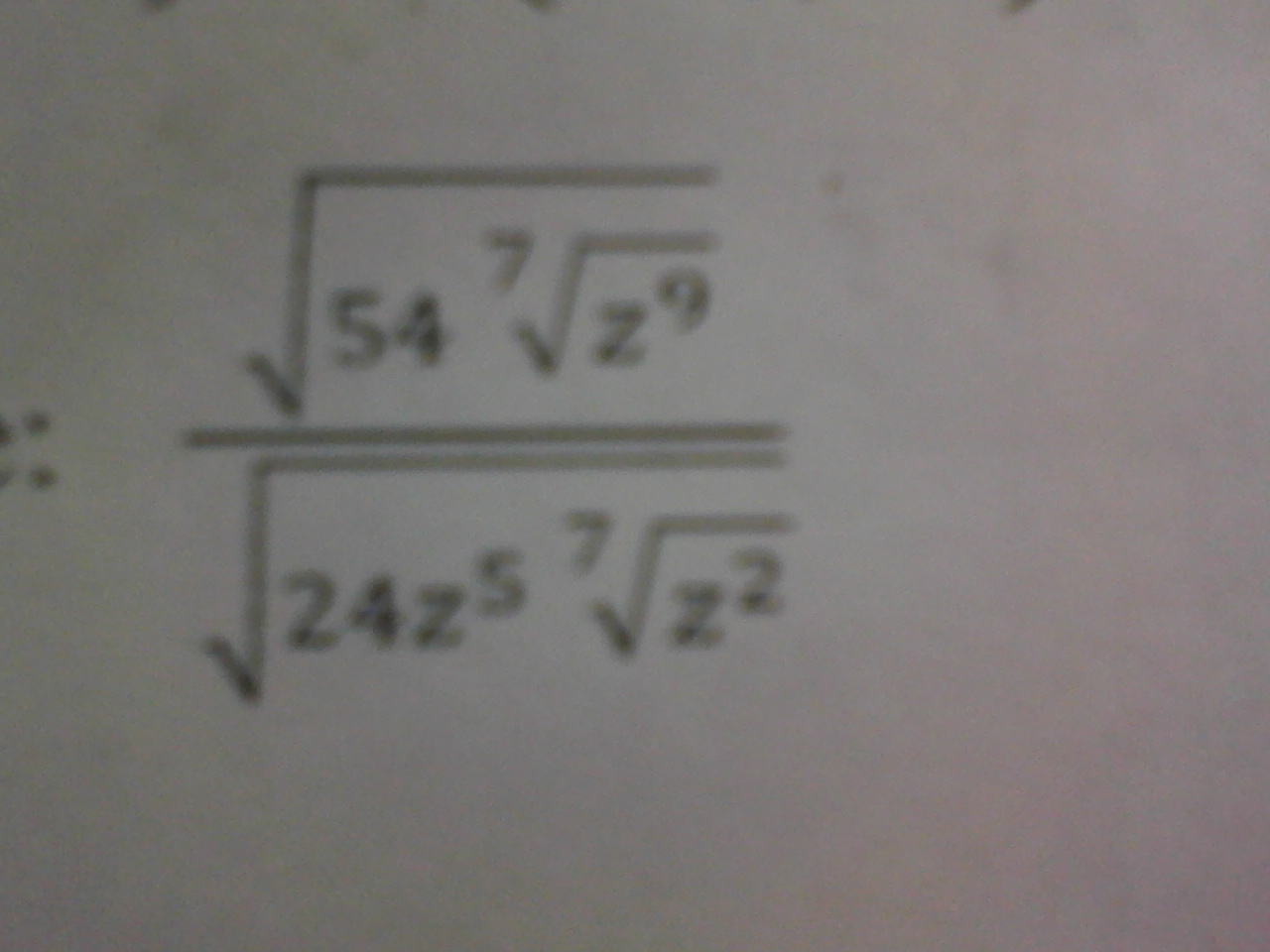 √(54⁷√z⁹)/√(24z⁵ *⁷√z²)=√54*z*⁷√z²/√24*z⁵ *⁷√z²=3z/2z⁵=3/2z⁴. Если я правильно понял условие, в котором не видно нифига почти...