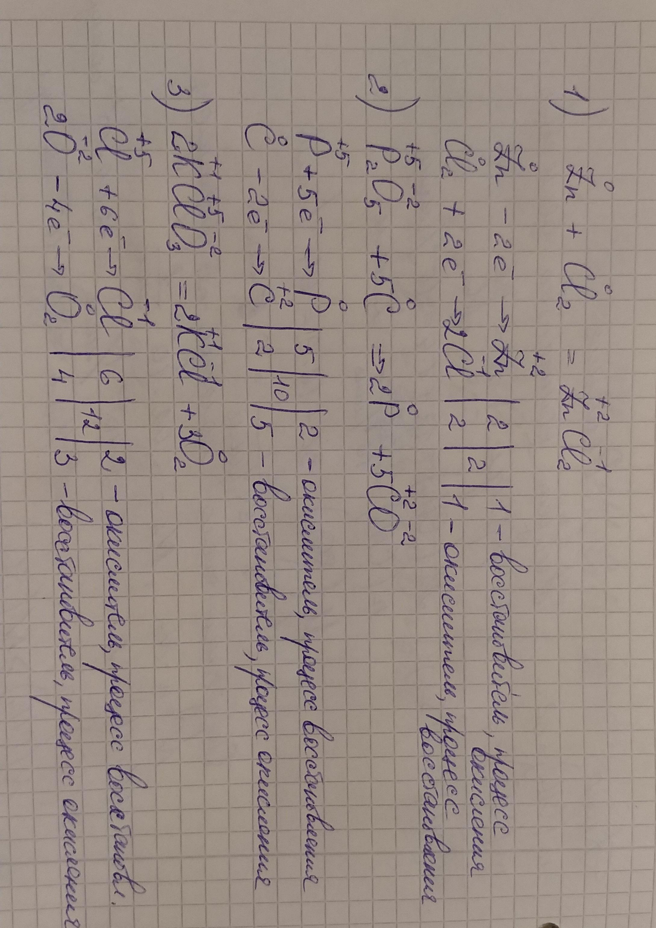 1) Zn(0)+Cl(0)=Zn(+2)Cl2(-1)