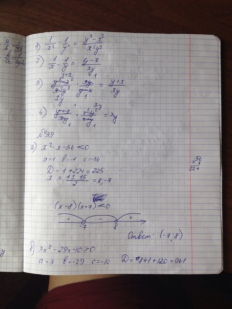 В твоем неравенстве (х-8)(х+7)<0 находим знак функции (х-8)(х+7) на самом правом интервале (правее отмеченной точки x = 8). Для этого надо взять любое число, которое больше числа x = 8. Например, возьмем x = 9 и получим: (9-8)(9+7)=16. Т.к. 16>0, значит в самом правом интервале ставим знак плюс.