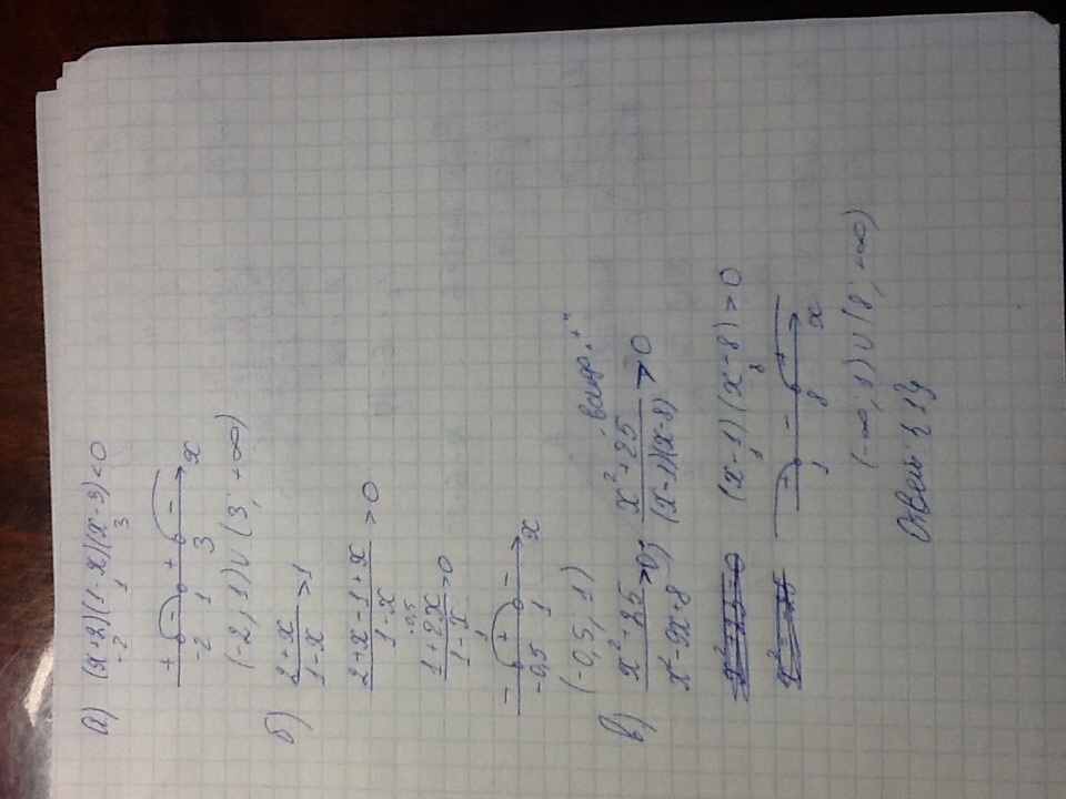 решите неравенство а)(х+2)(1-х)(х-3)<0