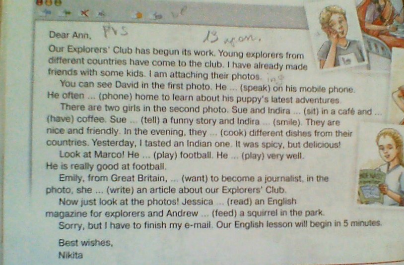 Помогите вставить слова в Present Simple или Present Continios. Срочно! Заранее спасибо)