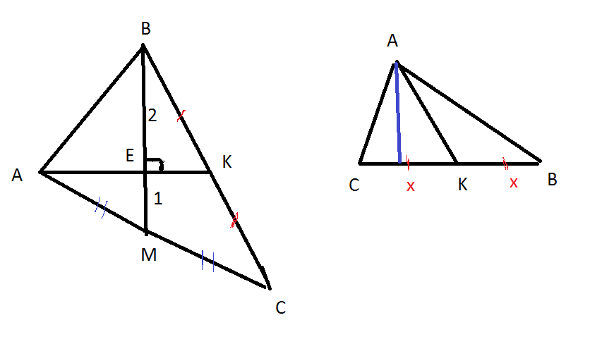 Треугольники АВК и АКС равновелики, у них одинаковые площади, так как одинаковые основания х и одинаковая высота ( синим цвето на рис.2)