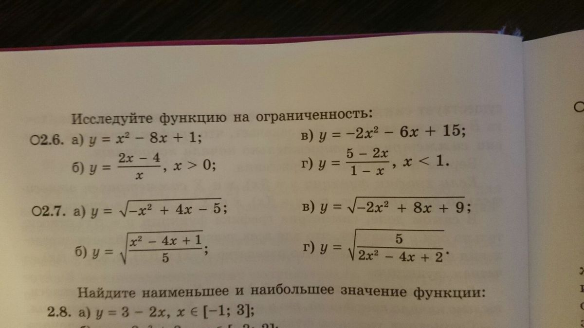 Парабола, ветви который идут вверх (коэффициент при старшей степени положительный). Соответственно, сверху не ограничена. Снизу ограничена. Найдём вершину параболы: