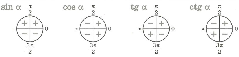 г) ctg 288°, 288° - IV четверть ⇒ ctg 288° < 0 "-"