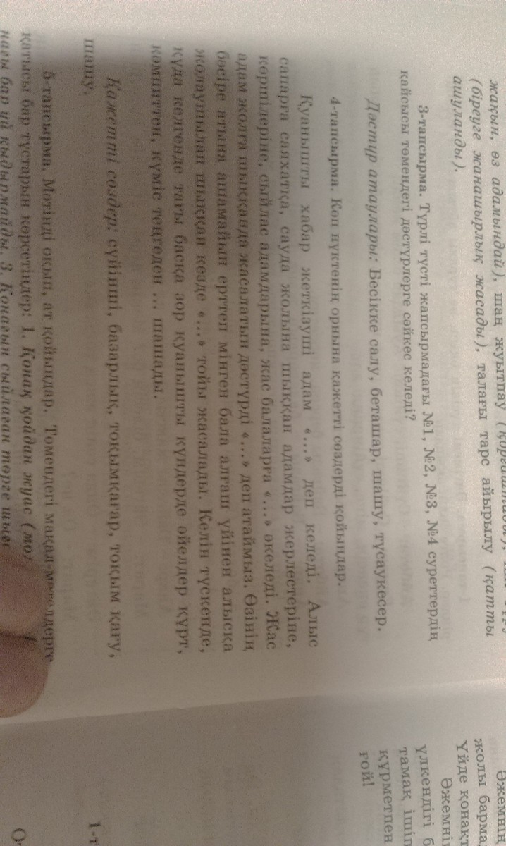 Вставляйте по очередности вместо точек 1 предложение-сүйінші, 2 предложение- базарлық,3 тоқымқағар, 4 тоқым қағу и 5 шашу, Вставляйте без цифр
