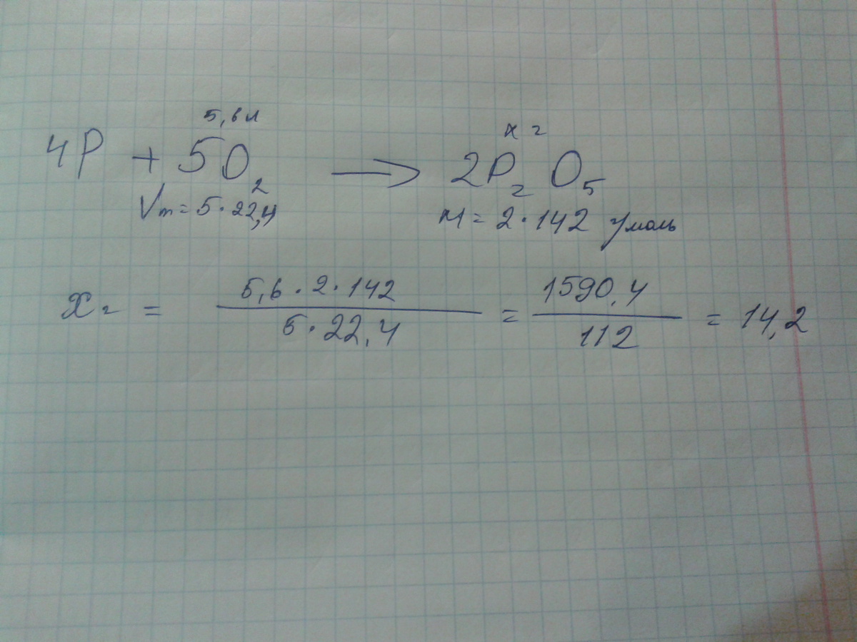 Какая масса Оксида Фосфора(5) образует при взаимодействии Фосфора с 5,6 л кислорода (нормальное условие).Помогите пожалуйста)