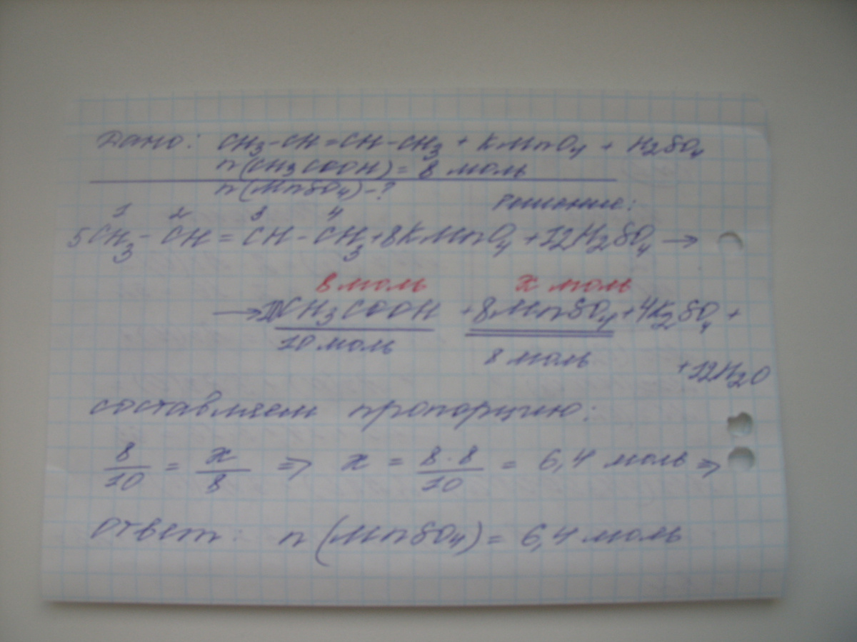кислоты. Вычислите количество вещества