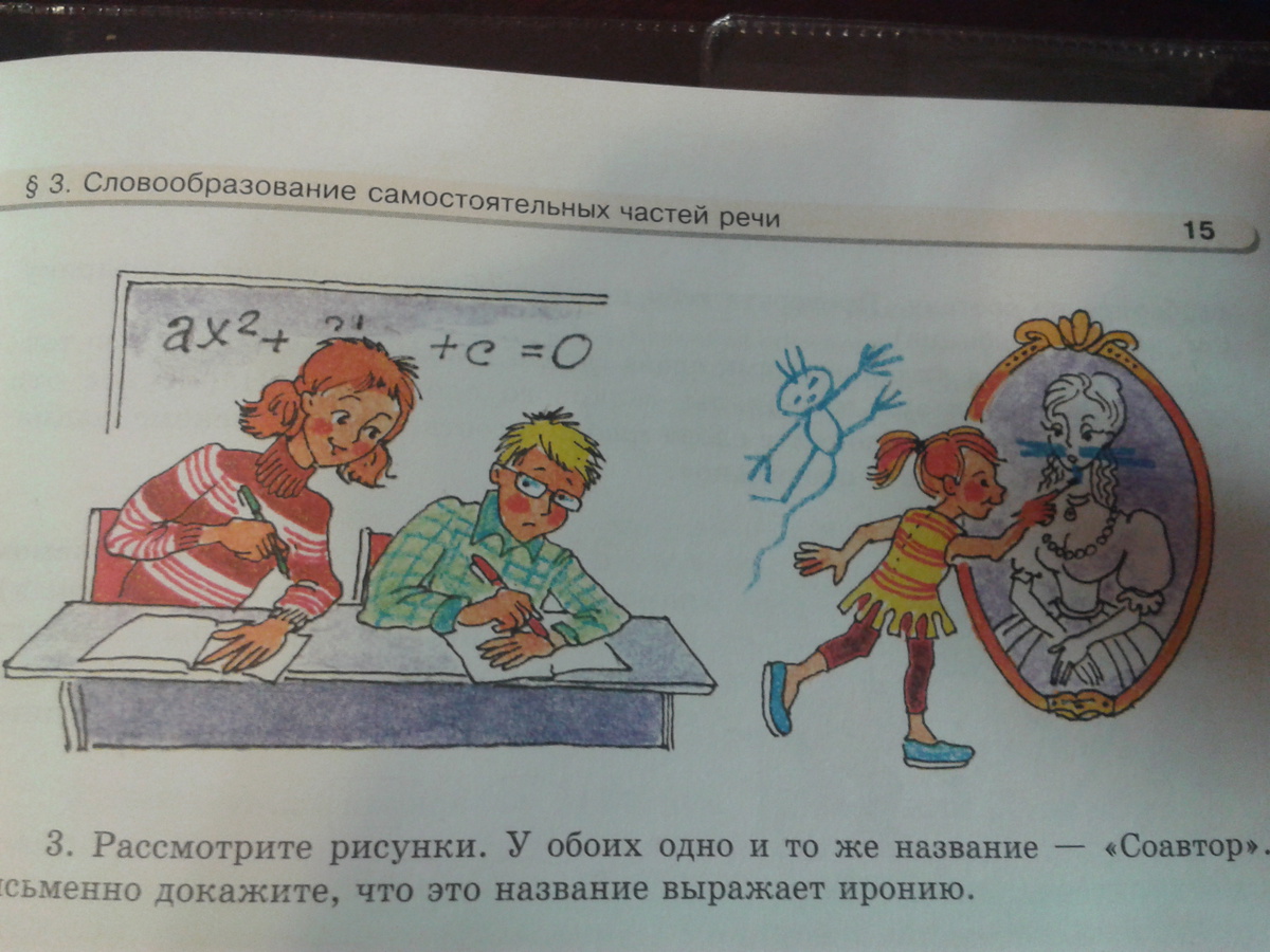 Рассмотрите рисунки.У обоих одно и тоже название-"Соавтор".Письменно докажите,что это названиевыражает иронию.