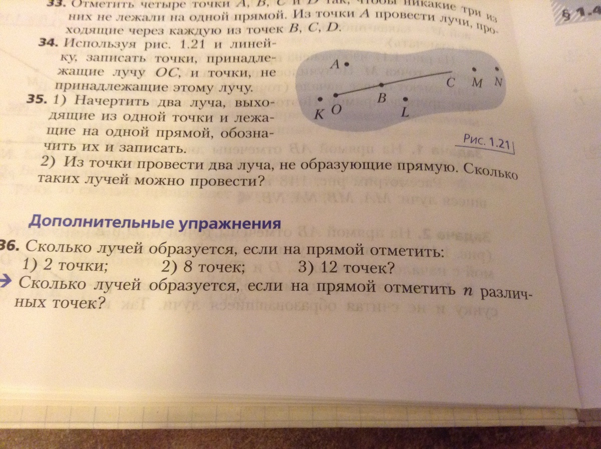 если на прямой отметить 1 точку, то образуется два луча, если две точки, то четыре луча, если пять то 10 лучей и т.д