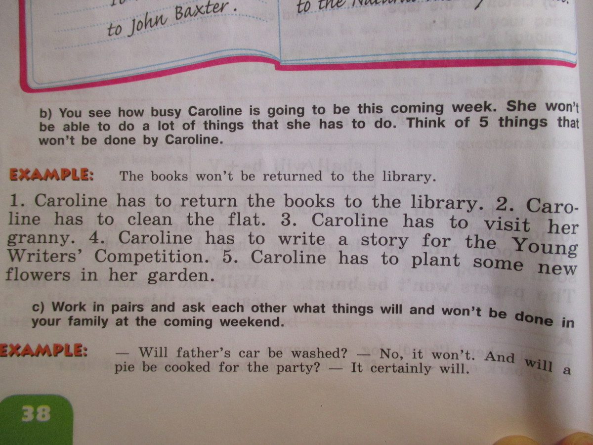the flat won't be cleaned. The granny won't be visited. A story for the young writer's competition won't be written. Some new flowers in her garden won't be planted.