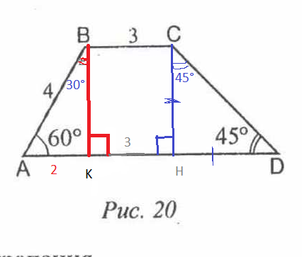 S( ABCD) = (BC + AD)· CH/2= (3 + 5 + 2√3)·2√3/2=(8+2√3)·√3 = (8√3+ 6) кв. ед.