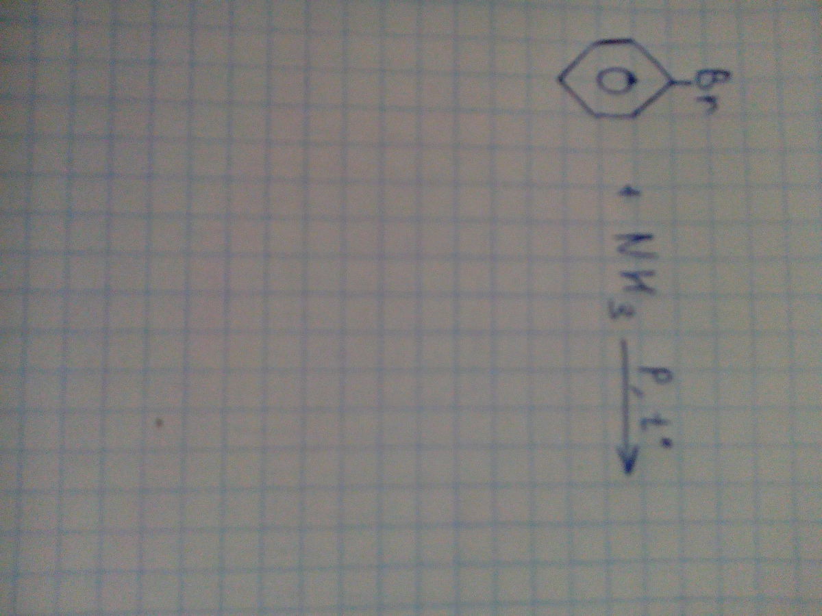 Бром бензол C6H5Br + аммиак NH3 =(над стрелкой давление и температура)