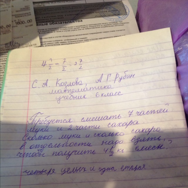 Требуется смешать 7 частей муки и 2 части сахара сколько муки и сколько сахара в отдельности надо взять чтобы получить 4 целых и одну вторую смеси?