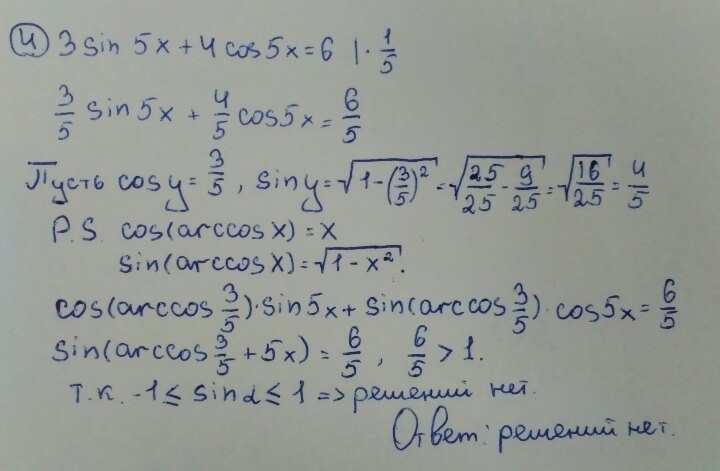 4) сколько корней имеет уравнение 3sin5x+4cos5x=6 на промежутке [-п;2п]