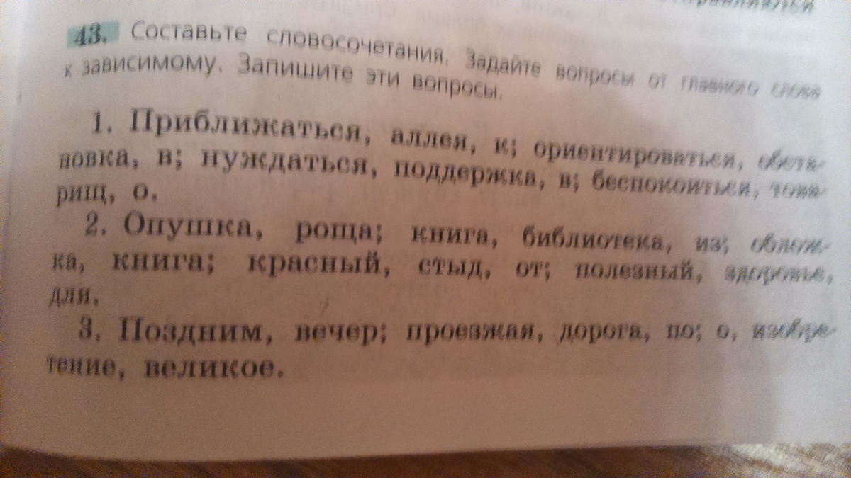 Приближаться(к чему) к аллее,ориентироваться(в чем) в обстановке,нуждаться(в чем)в поддержке,беспокоиться(о ком) о товарище. опушка(чего)рощи,книга(откуда) из библиотеки.обложка(чего) книги,красный (от чего) от стыда, полезный( для чего) для здоровья,богровый(от чего) от натуги, (каким)праздничным вечером, на (какой) проезжей дороге.