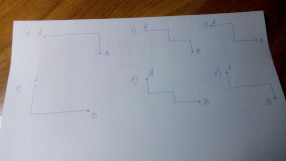 площадка с аттракционами имеет форму прямоугольника, по границе которого идёт длрожка парка.к тому же, площадка разделена двумя аллеями на 4 меньших прямоугольника. сколько существует маршрутов, соединяющих пункты А и В, если каждый маршрут не должен проходить дважды через одно и то же место.ребята помогите вот картинка очень надо.