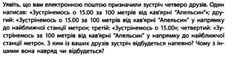 Друг 1 также не определил место (так как под его определение попадает множество точек на окружности с центром в кафе и радиусом 100 метров).