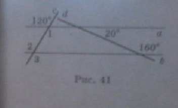 Так как 160°+20°=180°, а это сумма внутренних односторонних углов, то можно сделать вывод, что прямые а и b параллельны.