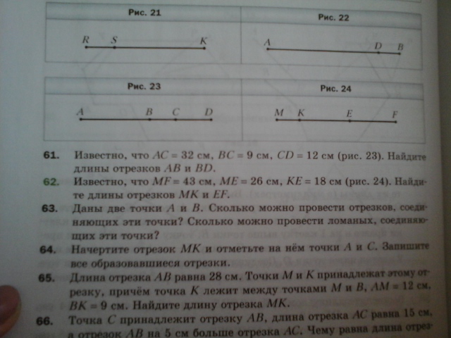 Известно, что MF = 43см, ME = 26см, KE = 18см. Найдите длины отрезков MK и EF.