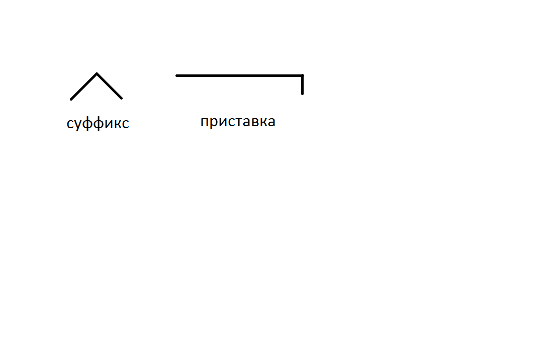 Суффикс перевернутой такой галочкой сверху, а приставку палочкой. Короче, смотри рисунок, там понятнее)