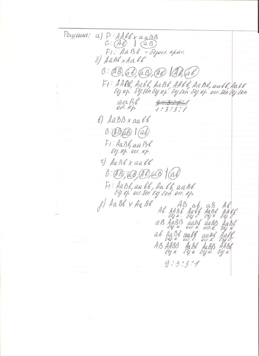 У пшеницы безостость «А» доминирует над остистостью «а», а красная окраска «В» колоса доминирует над «в» белой. Определите фенотип и гибридизацию в следующих скрещиваниях: А) ААвв × ааВВ Б) АаВв × Аавв В) АаВВ × аавв Г) АаВв × аавв Д) АаВв × АаВв (последний с помощью таблицы расчертите)