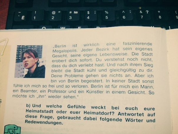 Берлин действительно увлекательный мегаполис. Каждый район имеет свое лицо, свой образ жизни. Город сразу завоевывыет тебя. Ты даже не понимаешь, что вы влюбился. И после победы (над вами) город остается прохладным и равнодушным к тебе. Ваши проблемы растворяются (дословно- пропадают в пустыне). Но я очень рад Берлину. Город заставляет меня чувствовать себя свободными потерянным. Берлиндля меня мужчина, чиновник, профессор и художник в одном лице. Так что я хочу видеть "его" снова