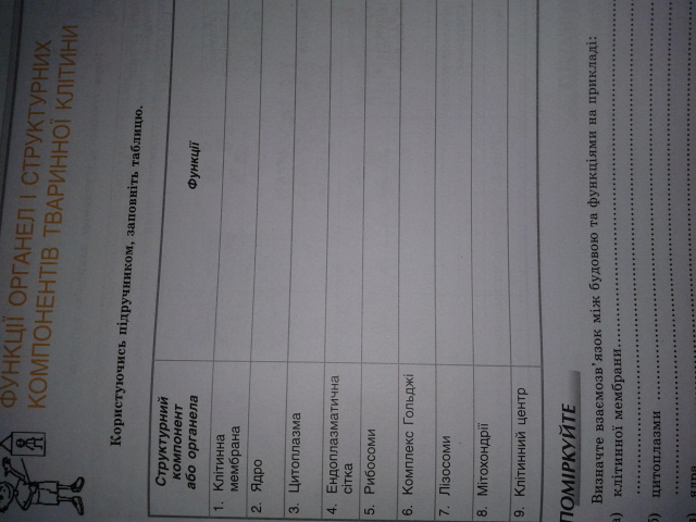 1)клітинна мембрана - забезпечує обмін речовин із навколшнім середовищем.Там відбуваються процеси, пов*язані зі сприйняттям інформації, що надходить із навкю середовища,формуванням і передачею збудження, захистом від проникнення хвороботворних мікроорганізмів.