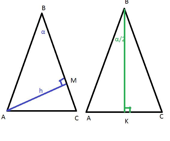 sin (α/2)=AK/AB ⇒ AK = AB·sin(α|2)=h·sin(α/2)/sinα