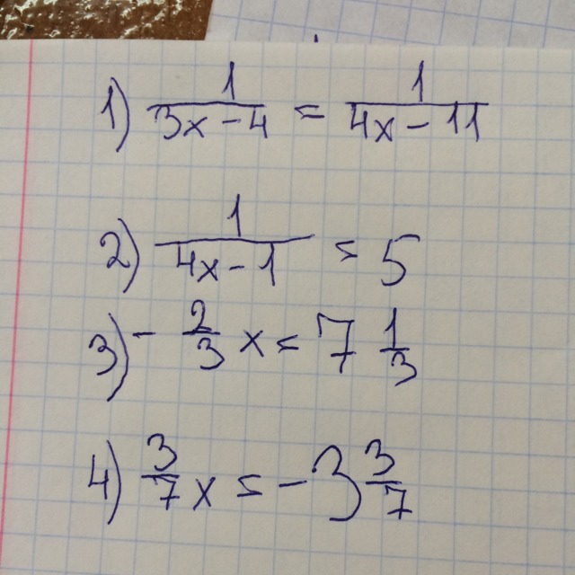 1. 4х-11 = 3х-4 ⇒ 4х-3х=11-4 ⇒ х=7