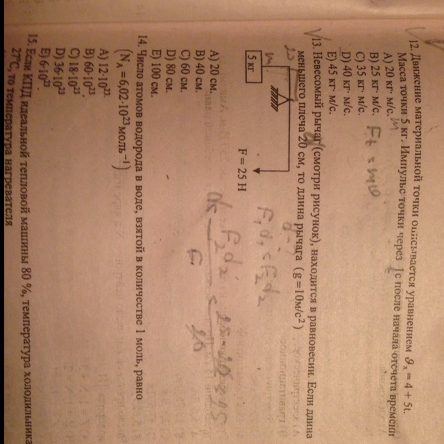 Невесомый рычаг(смотри рисунок), находится в равновесии. Если длина меньшего плеча 20см, то длина рычага(g=10м/с^2)