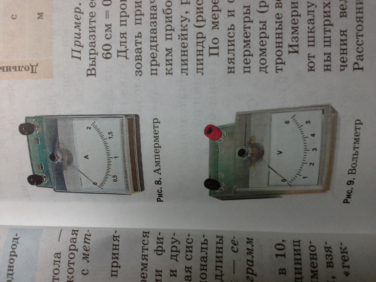 По рисункам 8 и 9 определите цену деления амперметра и вольтметра. Помогите, пожалуйста)