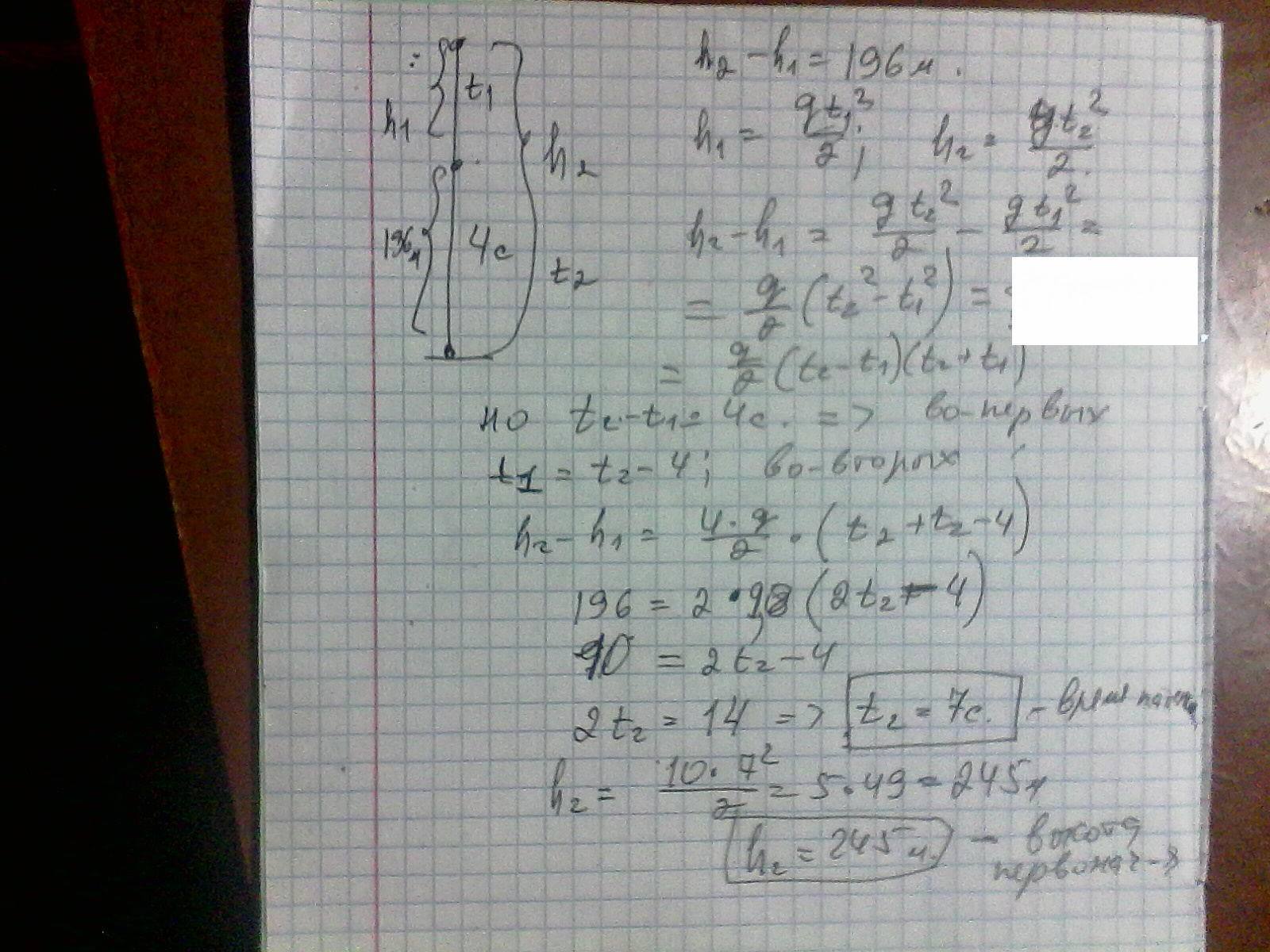 Тело падает с некоторой высоты и проходит последние 196 м пути за 4 с. С какой высоты и сколько времени падало это тело?