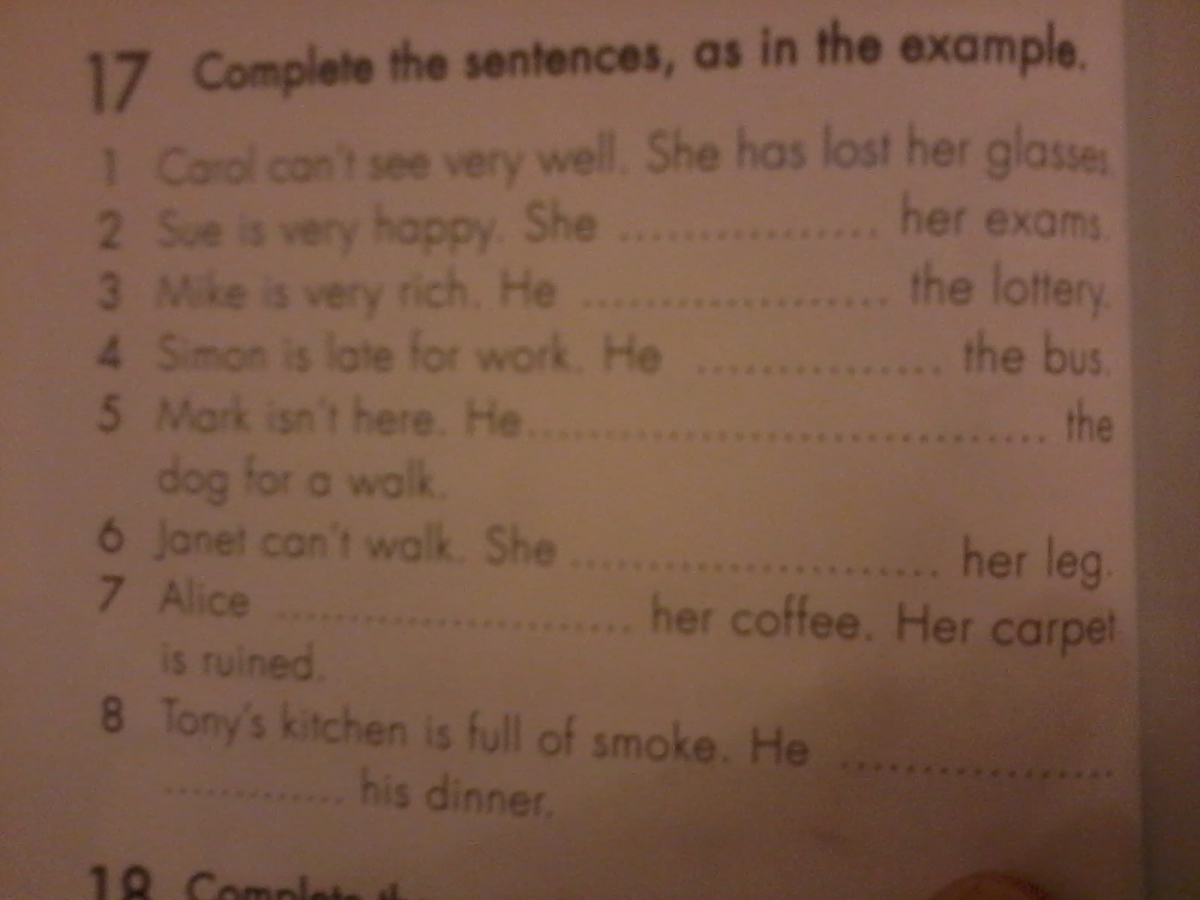 7. Alice has dropped her coffee. He rcarpet is ruined.