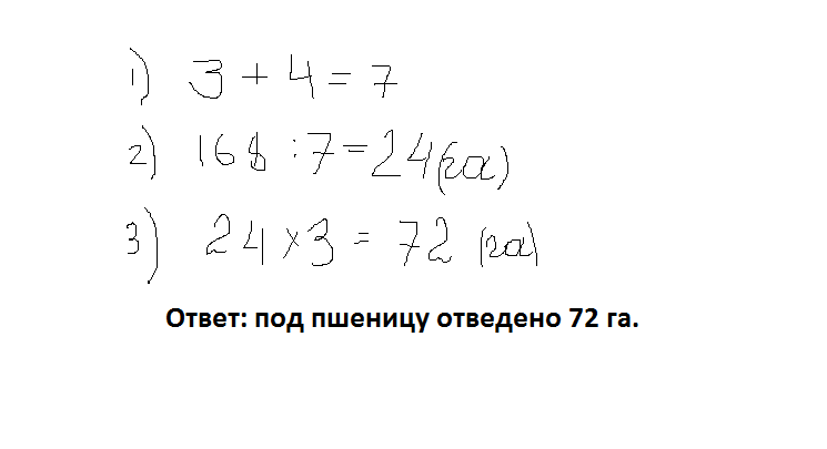 пшеницей и рожью в отношении 3:4. Сколько га отведено под пшеницу?
