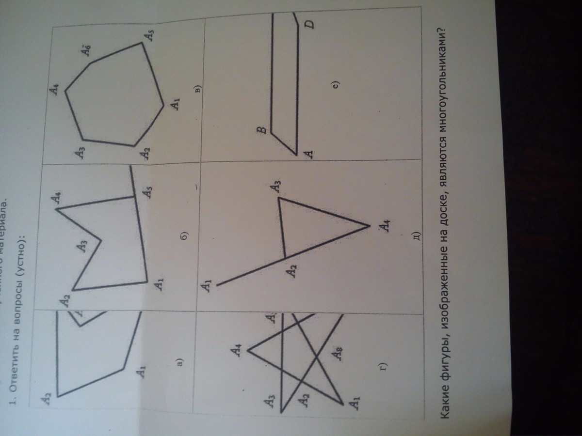д) Не является многоугольником, так как изображена не ломаная (два соседних звена лежат на одной прямой)