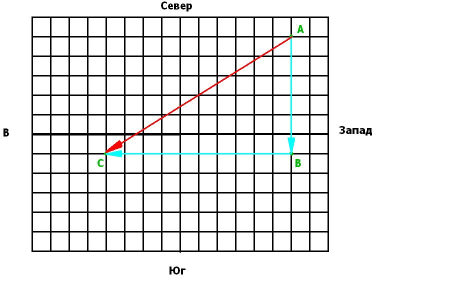Ребяттт помогите пожалуйста))Выбрав подходящий масштаб, начертите векторы, изображающие полет самолета сначала на 300 км на юг от города А до В, а потом на 500 км на восток от города В до С. Затем начертите вектор AC, который изображает перемещение из начальной точки в конечную.