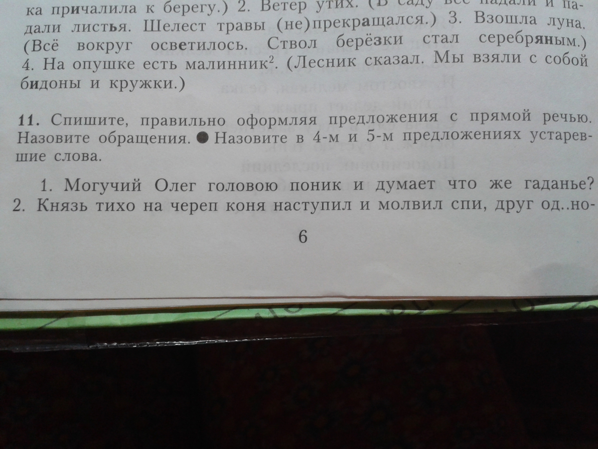 помогите СПИШИТЕ,ПРАВИЛЬНО ОФОРМЛЯЯ ПРЕДЛОЖЕНИЯ С ПРЯМОЙ РЕЧЬЮ.НАЗОВИТЕ В 4-М И 5-М ПРЕДЛОЖЕНИИ УСТАРЕВШИЕ СЛОВА. номер 11