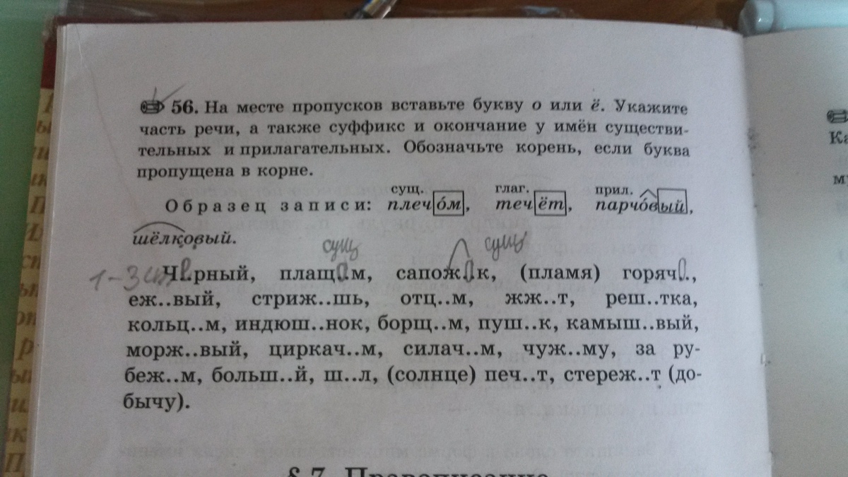 Чёрный, плащом, сапожок, (пламя) горячо, ежовый, стрижёшь, отцом, жжёт, решётка, кольцом, индюшонок, борщом, пушок, камышовый , моржовый, циркачом, силачом, чужому, за рубежом, большой, шёл, (солнце) печёт, стережёт (добычу)